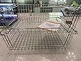 A product shot of two stackable, chrome-colored metal wire storage baskets with handles, positioned one on top of the other, against a white background. The baskets feature a grid pattern on the bottom and vertical wire sides.